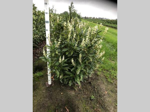De Prunus laurocerasus ‘Reynvaanii’ is een subtiele lauriersoort die voornamelijk in de hoogte groeit. Dit maakt deze plant een smalle groeier die perfect in een smalle haag past. De ‘Reynvaanii’ groeit snel en bereikt de maximale hoogte van vijf meter binnen enkele jaren. Net als andere lauriersoorten is deze haagplant eenvoudig te onderhouden. In de periode mei – juni geeft de Prunus ‘Reynvaanii’ witte bloemen wanneer u ervoor kiest om deze maximaal een keer per jaar te snoeien.